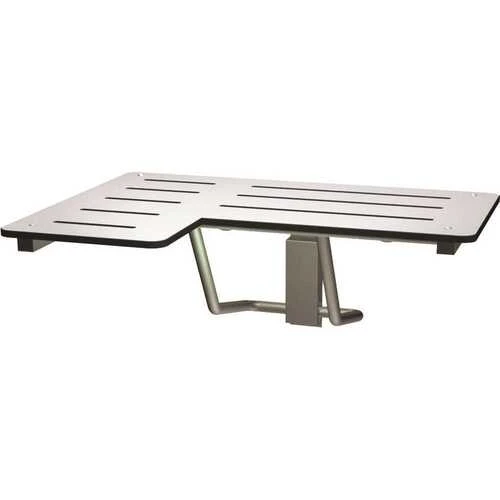 The (Right Hand) Folding Shower Seat meets ADA Accessibility Guidelines and the needs of the physically disabled and elderly. Seat is ” (13 mm) thick, one piece solid, white colored, black core phenolic. Frame, support legs, flanges, and bracket are type 304 satin finish stainless steel. Phenolic seat ONLY is field reversible. Seat measures 33³ (838 mm) wide and projects 22-7â„8³ (581 mm) from wall.