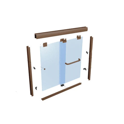 CRL’s Suite “EK” Series Frameless Sliding Shower Door Kits for 1/4 inch (6 millimeter) thick glass provides an alternative design and mounting method to our Deluxe Cottage Series Sliders. The Hanger Bracket is a cost-reducing device, as it clamps directly onto the glass and eliminates the need for drilling holes (set screws only). The brackets allow for smooth, quiet operation and long service life at a lower cost. The specially designed Header is reversible so the customer has the choice of using the gently curved side, or the flat side with top and bottom edge bevels. Two popular stock sizes are available: 60 inch wide x 60 inch high (1.52 x 1.52 meters) and 60 inch wide x 72 inch high (1.52 x 1.83 meters).