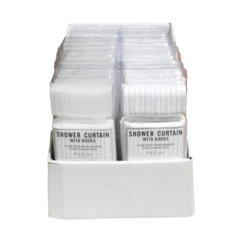 Shower curtain sets-white and clear packed in display box. Also Includes shower curtain hooks.