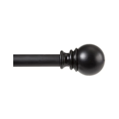 30″ – 84″, Black, Decorative Layla Curtain Rod With Matching Black Plastic Finials, Rod Is Metal & Comes With All Mounting Hardware.