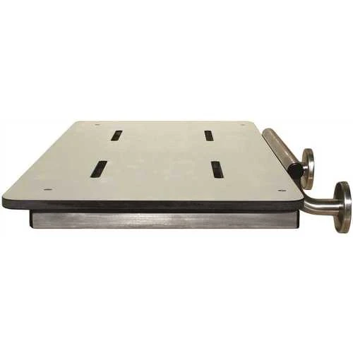 Permanent rear mount tub bench 29 in. x 18.5 in. without skis. Meets and exceeds all building codes ADA criteria and 2010 ADAAG and 2009 ANSI standards. Exceeds 250 lb.. load rating. White phenolic solid top with slots. The frame of the bench is stainless steel (18/8) and the seat is automatically held in a raised position by a stainless steel friction hinge bracket attached to the end of the tub seat. When lowered into its down position the seat rests securely on the tub dam for support. Can be easily installed with our GBW40 WingIts worlds strongest fastener. Designed for tubs with a 15.5 in. to 17.5 in. height from tub dam to finished floor.